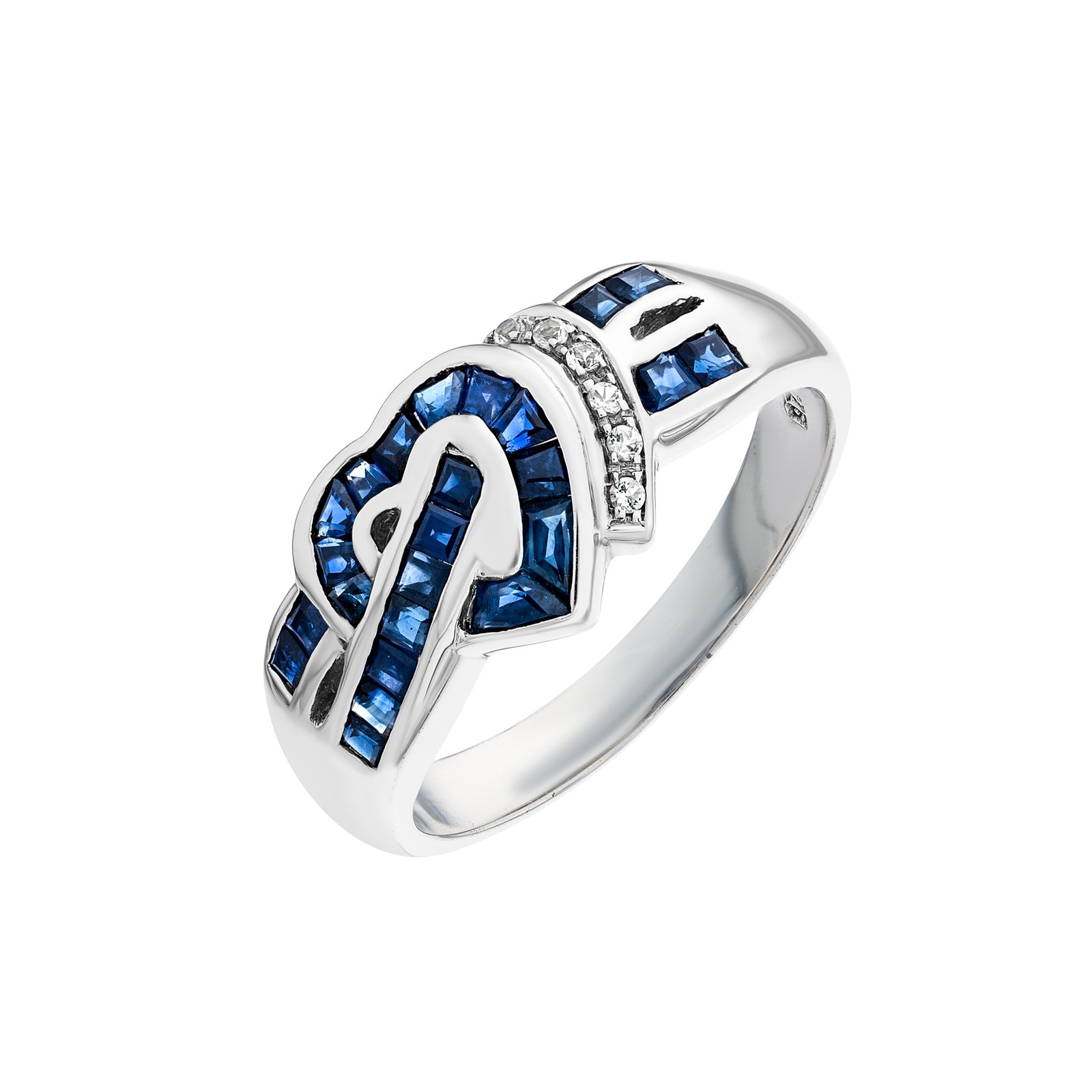 Elegant 925 sterling silver ring rhodium-plated and set with natural blue sapphires and white topaz. Brilliant cut gemstones create a sophisticated and timeless design.