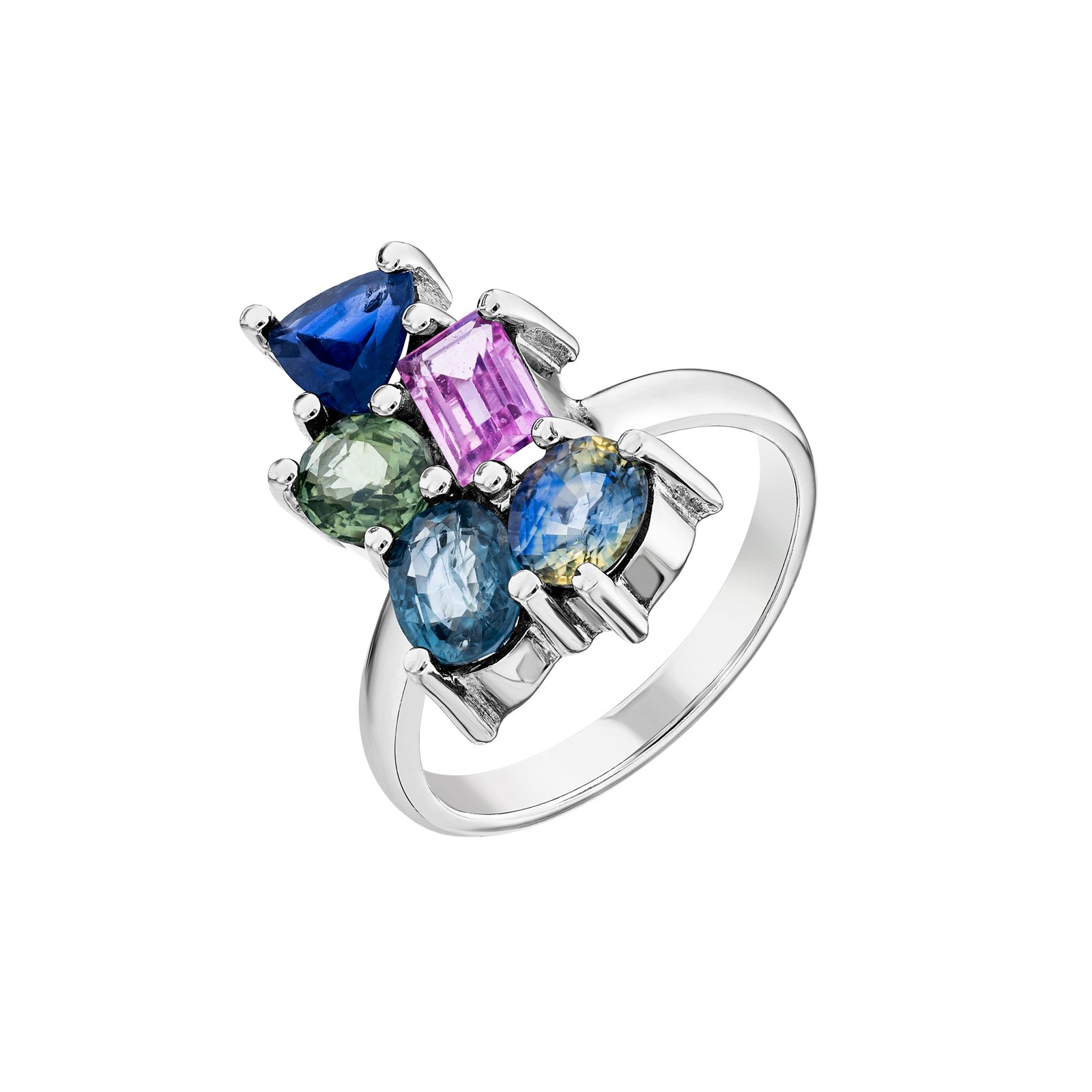 This Genuine Multi-Color Sapphire Silver Ring is a stunning expression of color and style. Handcrafted from 925 sterling silver, it features a refined arrangement of blue, dark blue, green, and pink sapphires — each stone carefully cut to enhance its natural brilliance.