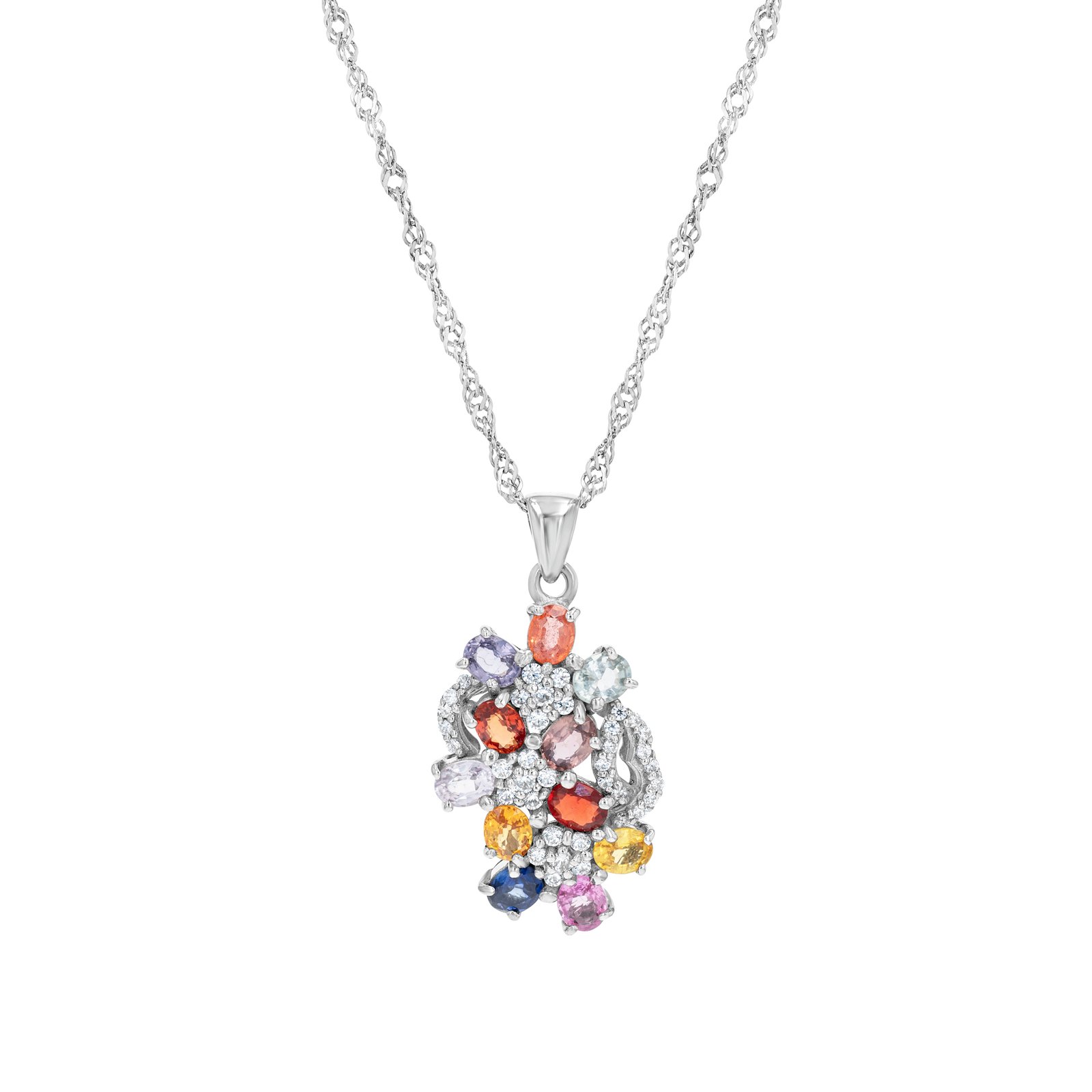 Each gemstone is precisely shaped in oval and round mixed cuts, delivering exceptional brilliance and clarity. The intricate silver setting highlights the stones’ vivid palette, resulting in a pendant that exudes sophistication and vibrancy — ideal for both everyday wear and elegant occasions.