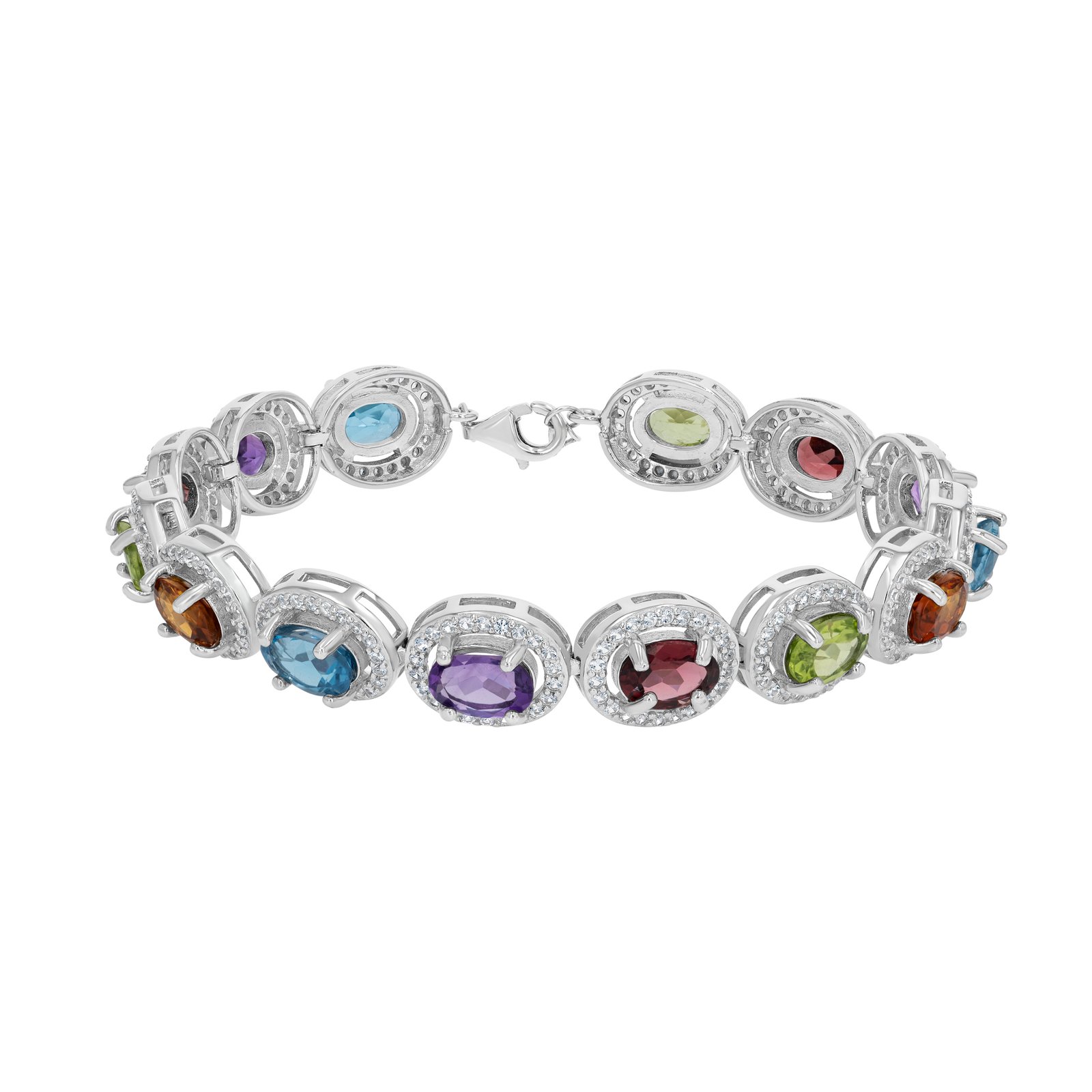 This Genuine Multi-Colour Gemstone Silver Bangle is a radiant expression of artistry and elegance. Crafted from 925 silver, it showcases Amethyst, Blue Topaz, Citrine, and Peridot gemstones—each cut in an oval mixed cut to enhance brilliance and color depth. With 7.00 carats of natural gemstones, this piece displays a mesmerizing array of purple, blue, yellow, and green tones. Its transparency and polish reflect fine craftsmanship, making it perfect for both everyday wear and special occasions.