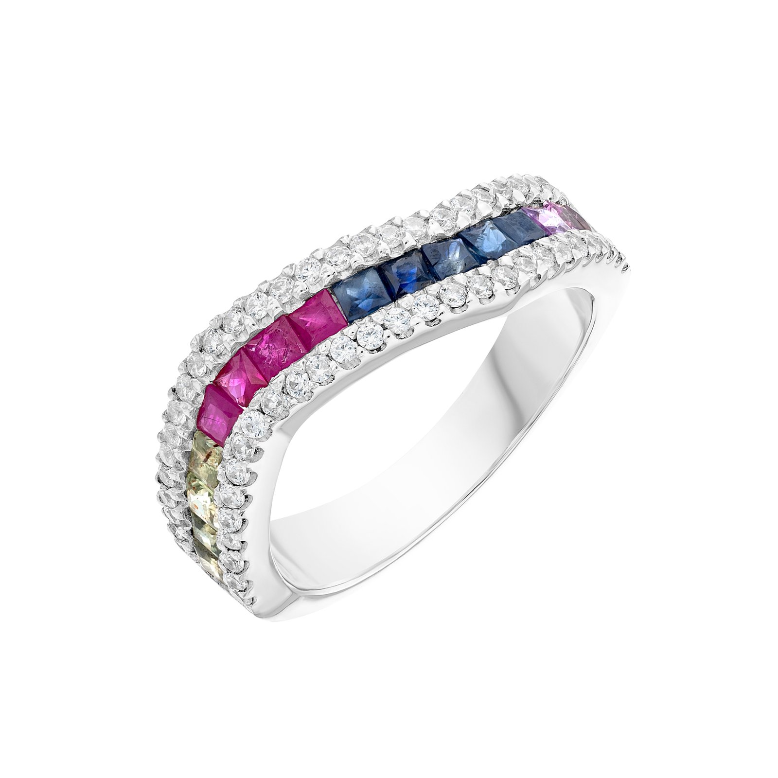 auto draftNatural Multi-Colour Sapphire & White Zircon Silver Ring – Wave Design, Rhodium Plated