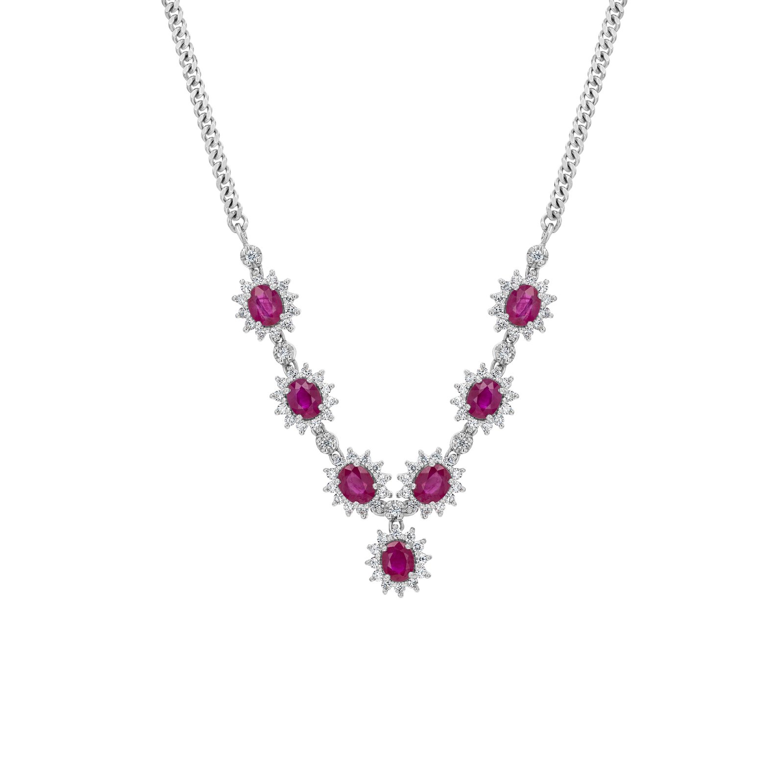 The gemstones are cut in brilliant oval and round shapes, ensuring exceptional luster and polish. With its graceful design and fine detailing, this pendant adds a touch of elegance to any jewelry collection, symbolizing passion, strength, and refinement.