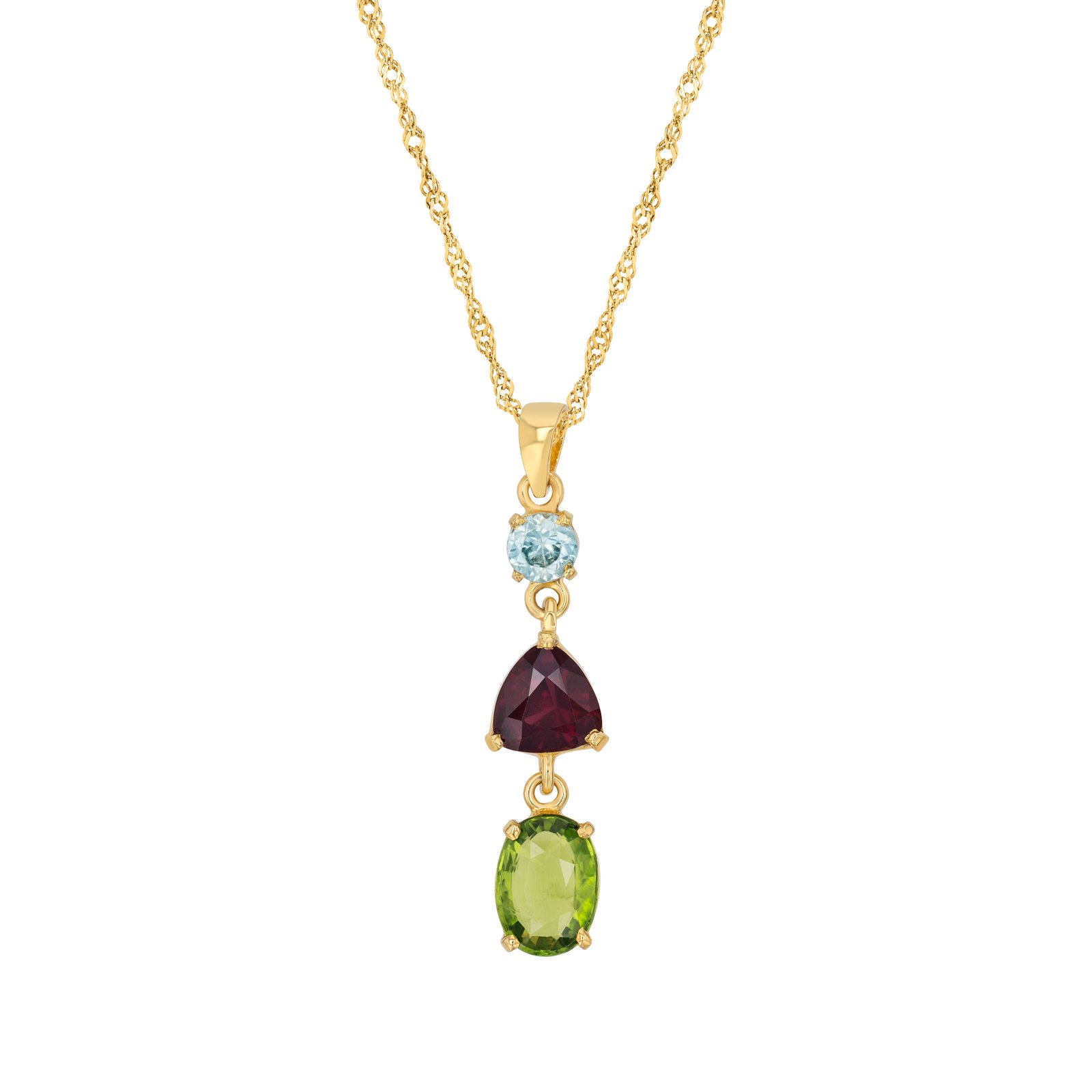 | Remarks | Handcrafted pendant featuring a vibrant trio of gemstones in a vertical arrangement |